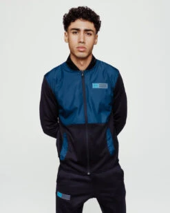 Ce survĂȘtement se compose d’une veste Ă capuche et d’un pantalon.