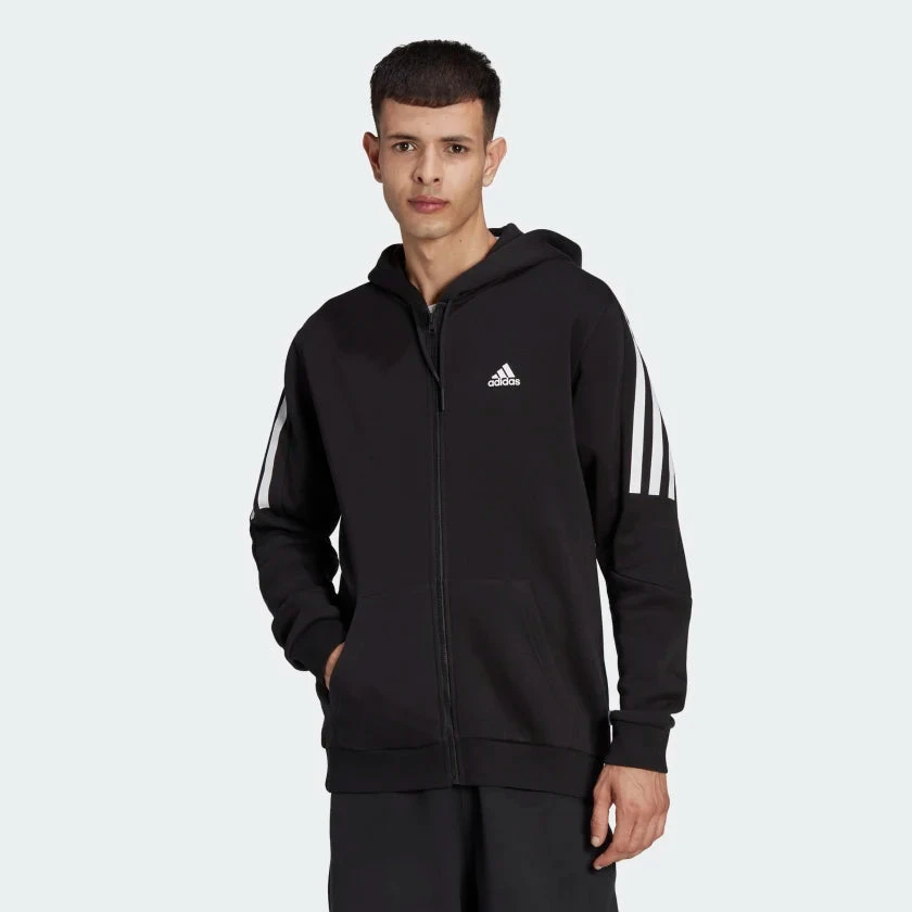 Veste à capuche Adidas à 3 bandes Future Icons – Noir/Blanc